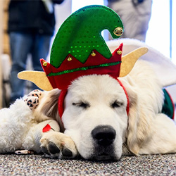 Cooper, Sarge, and Ryder love to make appearances and one-on-one visits with staff and students. However, they also need their rest in order to play their role and frankly, cannot be everywhere, all the time.